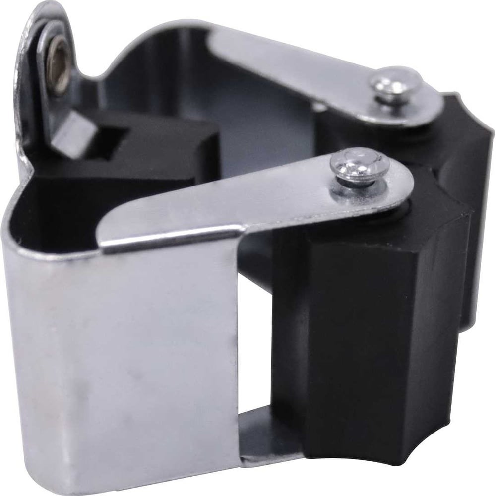 Роликовый зажим для инструментов предназначен для крепления и хранения инструмента, садового и хозяйственного инвентаря, а так же для фиксации оружия в шкафах и сейфах. Диаметр зажима от 18 до 35 мм. Изготовлен из пружинистой стали. Имеет два ролика из мягкого полиуретана и подушечку. Надежно обхватывает и удерживает инструмент, при этом инструмент легко снимается и вставляется. В держателе предусмотрены два отверстия диаметром 3,2 мм для крепления винтами или саморезами.