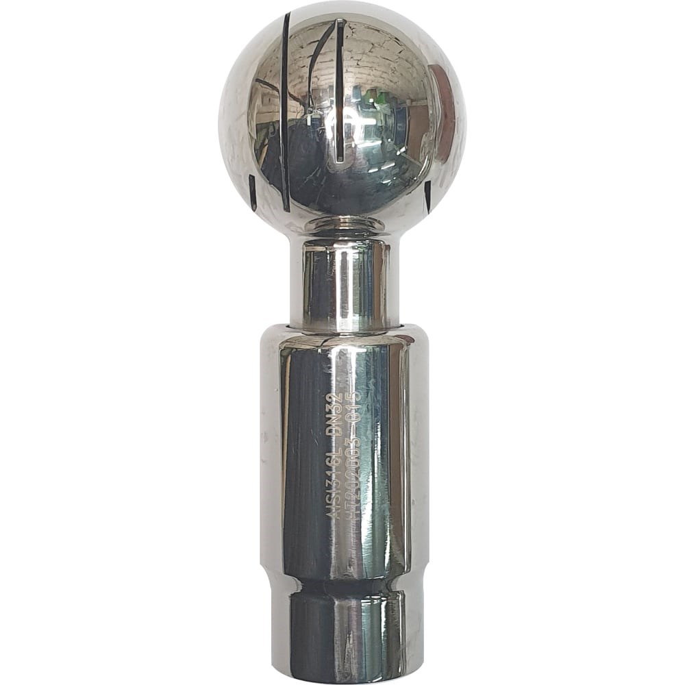 Ротационная вращающаяся щелевая моющая головка ТПК «Московия» ГМС- DN32-316L применяется в мойке баков, резервуаров и ёмкостей. Моющая головка данного типа для присоединения сваркой. Рабочее давление 2-3 бар. Она изготовлена из нержавеющей стали AISI 316L. Радиус очистки 360 градусов. Максимальная температура среды 140° C.D шара - 53,0 мм; L - 145,0 мм;øD - 34,00 ммРадиус распыления - 1,75 мРадиус очистки - 1,25 мРасход - 9,00 м³/ч