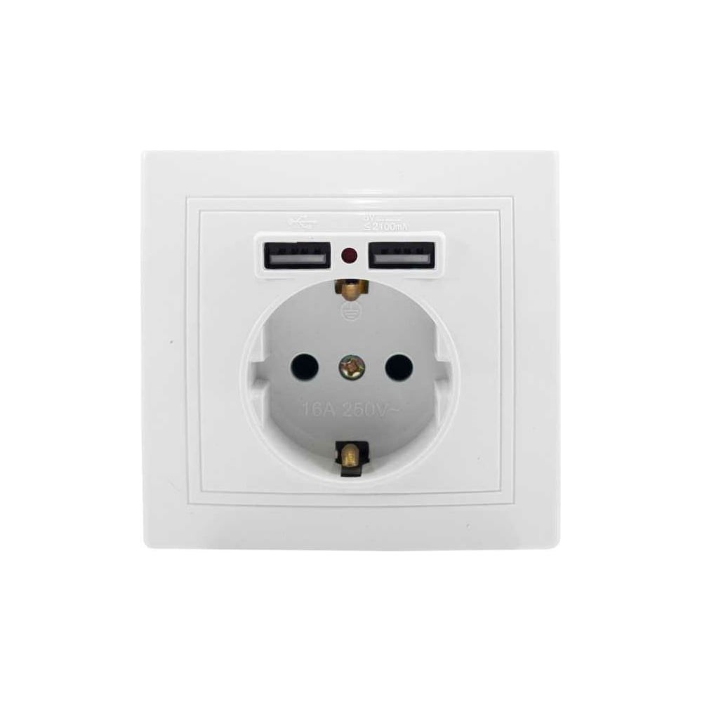 Розетка Jilion 1 гнездо с заземлением с USB, белый 9533166