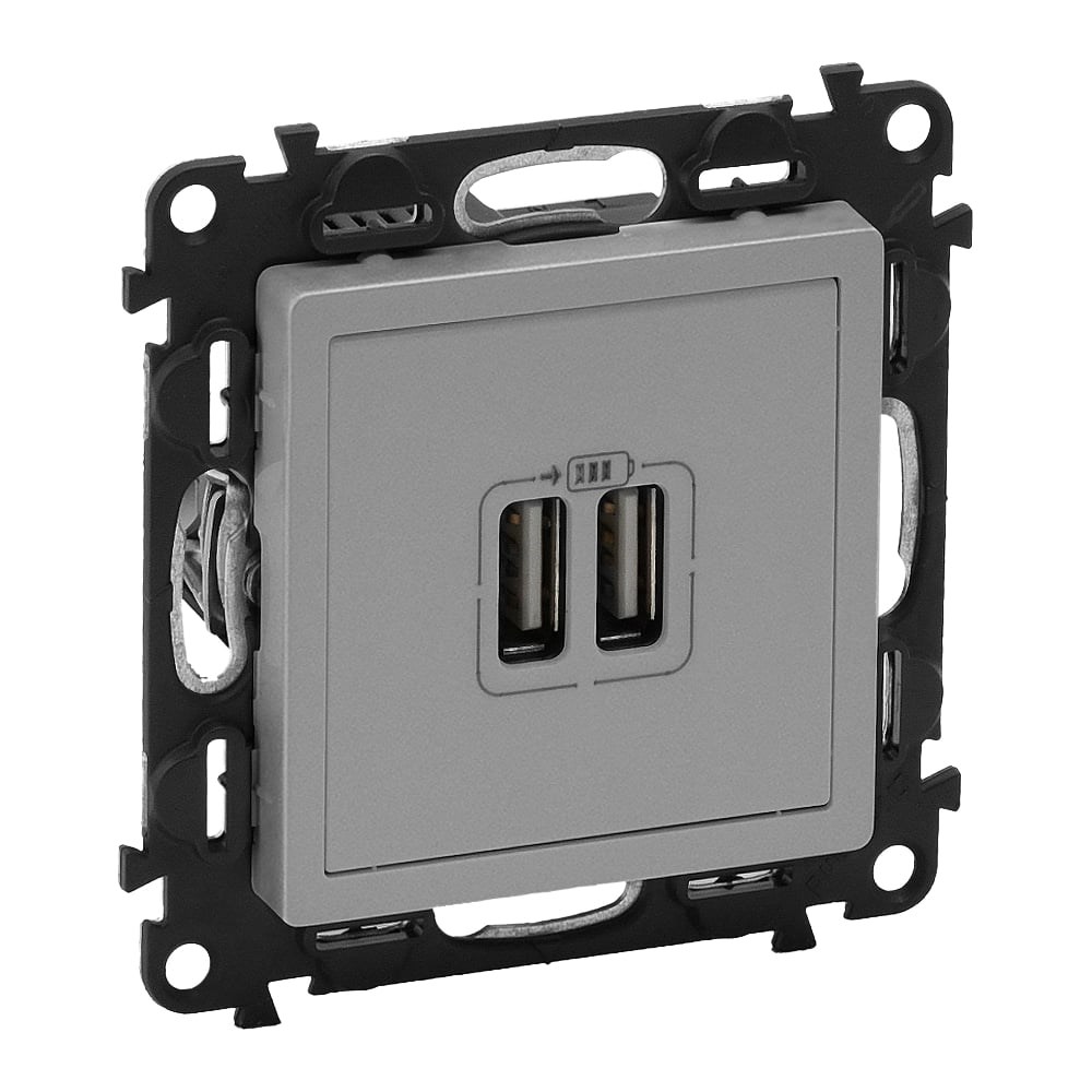 Розетка Legrand Valena LIFE DIY Алюминий 2-ая USB 240В/5В 1500мА 753612