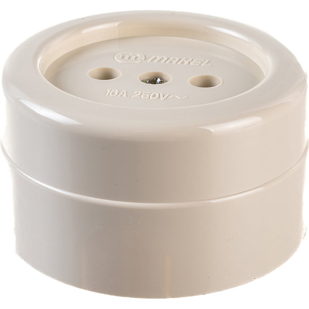Розетка круглая накладная без заземления Makel 16012 одинарного типа устанавливается в наружную проводку и используется для быстрого и удобного подключения различных электроприборов в сеть. Монтируется наружным способом, заземление отсутствует. Корпус розетки округлой формы, произведен из пластика, устойчивого к царапинам, ударам и прочим механическим повреждениям.