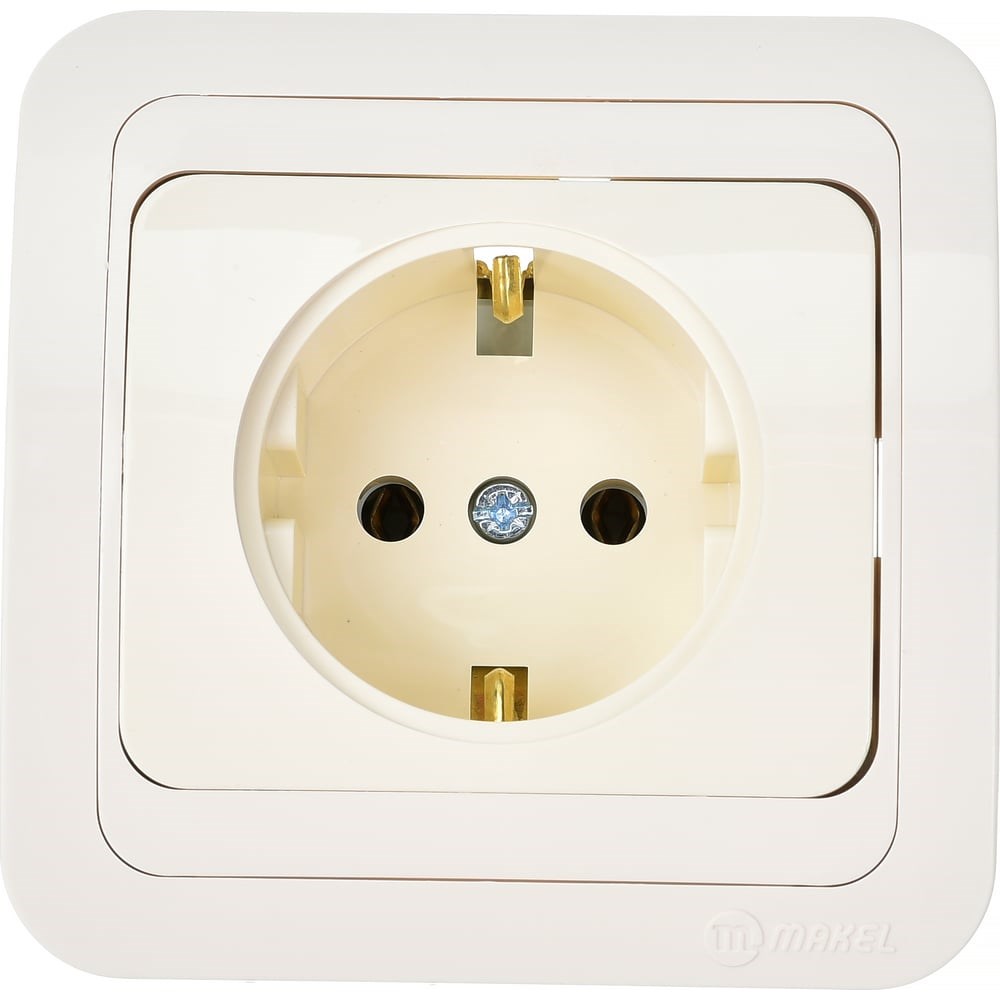 Розетка с заземлением, кремовая Makel Mimoza 25028 используется для подключения электрических приборов к сети. Корпус розетки изготовлен из устойчивого к ударам пластика. Гладкая поверхность кремового цвета. Применяется для монтажа скрытой проводки. Отвечает всем стандартам пожарной безопасности.