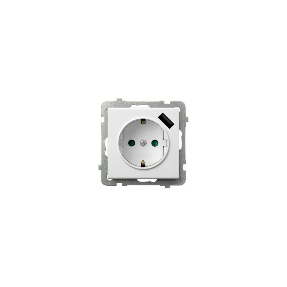 Розетка Ospel Sonata 1-я с/з Schuko+USB-зарядное устройство, белый GP-1RSPUSB/m/00