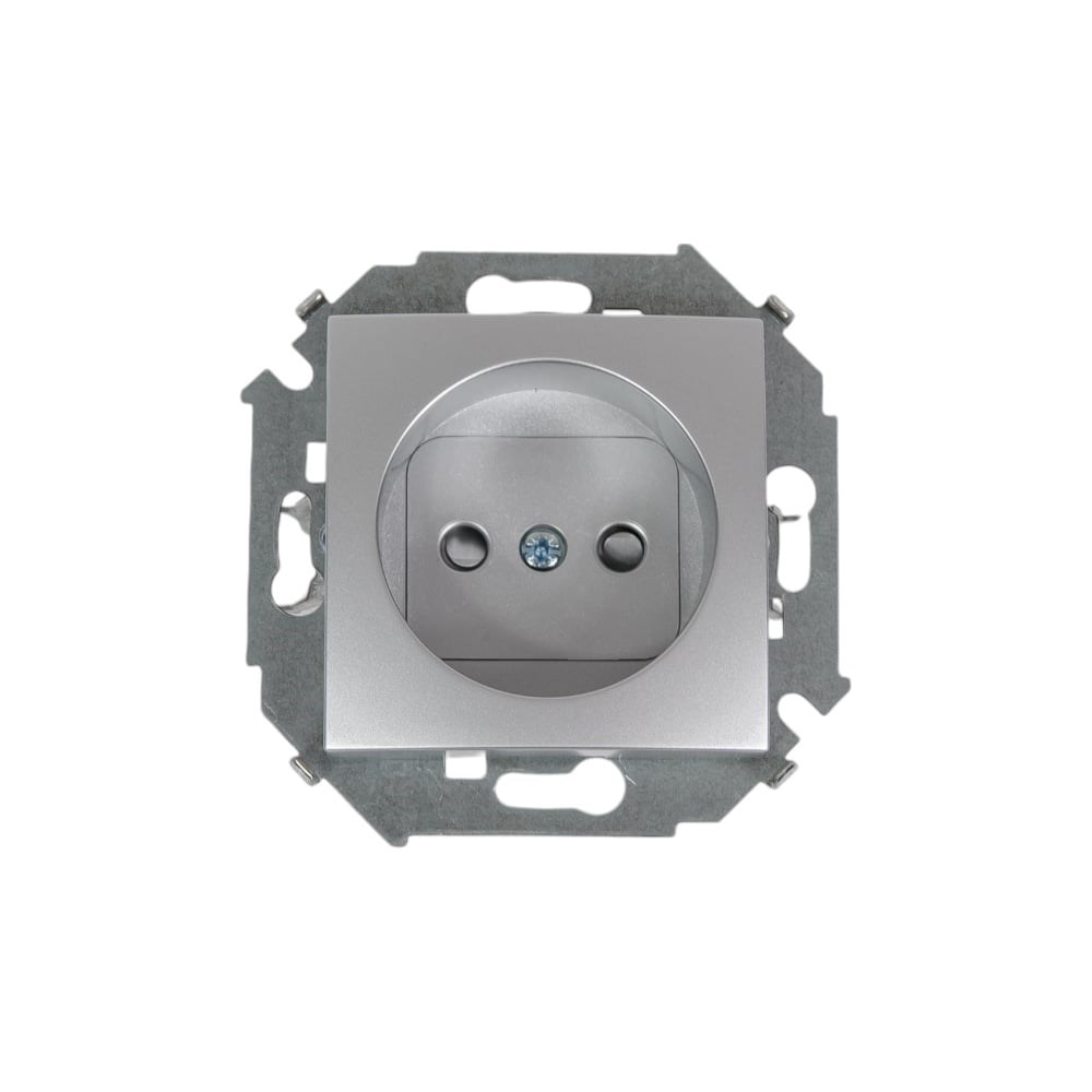 Розетка Simon без заземления со шторками, 16А, 250В, винтовой зажим, алюминий 1591444-033