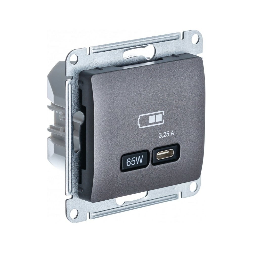 Розетка Systeme Electric Glossa usb тип-c 65w высокоскор.заряд. qc, pd, механизм, графит GSL001327