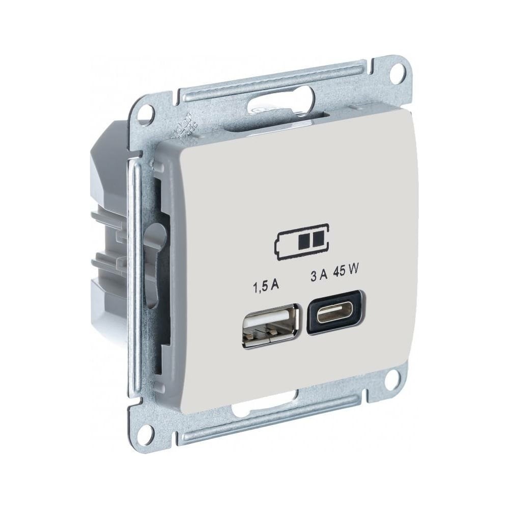 Розетка USB Systeme Electric GLOSSA A + тип-C 45W высокоскор.заряд. QC, PD, механизм, БЕЖЕВЫЙ GSL000229