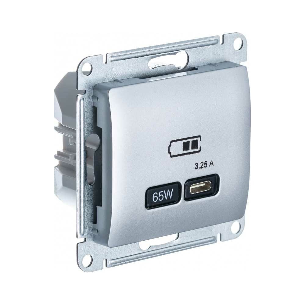 Розетка USB Systeme Electric GLOSSA тип-C 65W высокоскор.заряд. QC, PD, механизм, АЛЮМИНИЙ GSL000327