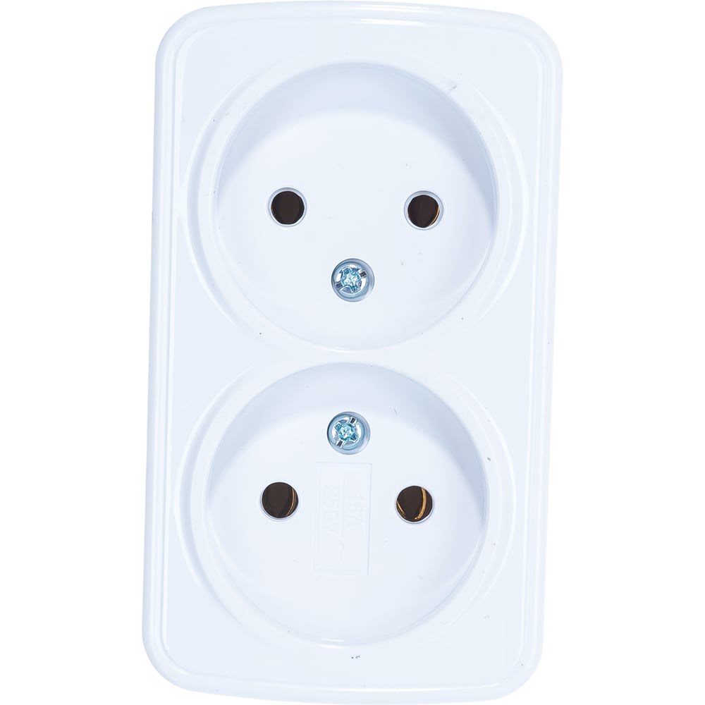 Двойная розетка без заземления, белая UNIVersal Союз Электра 0024 предназначена для накладного монтажа. Позволяет напрямую подключать до двух электроприборов одновременно. Материал - пластик белого цвета. Рабочее напряжение до 250 В. Размеры: 130х65х34 мм.