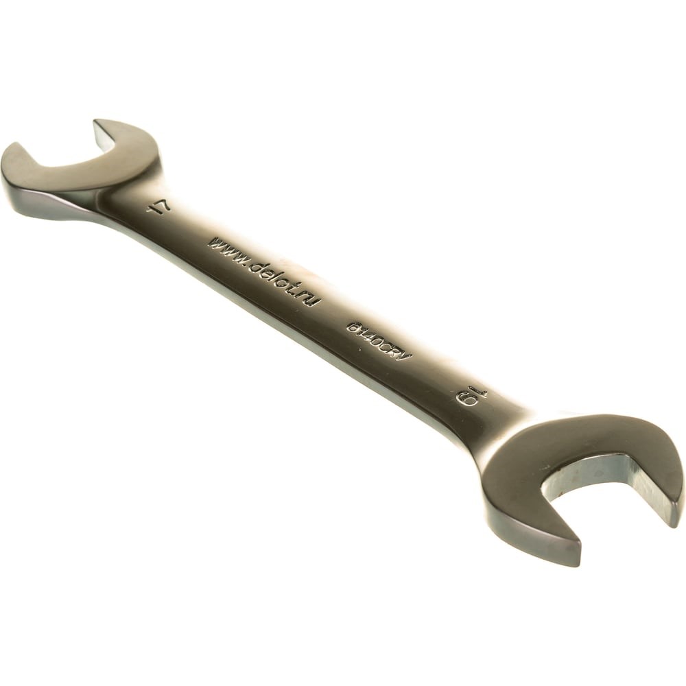 Рожковый ключ 17x19мм Дело Техники 510197 - двусторонний ручной инструмент для выполнения крепежных работ при сборке, демонтаже, обслуживании различных конструкций и агрегатов. Изделие отличается надежностью и долговечностью благодаря использованию хром-ванадиевой стали 31CRV3 и правильной термообработке до твердости 42-47 HRC. Защита от коррозии обеспечивается за счет лакирования поверхности. Соответствует требованиям ГОСТ-Р.