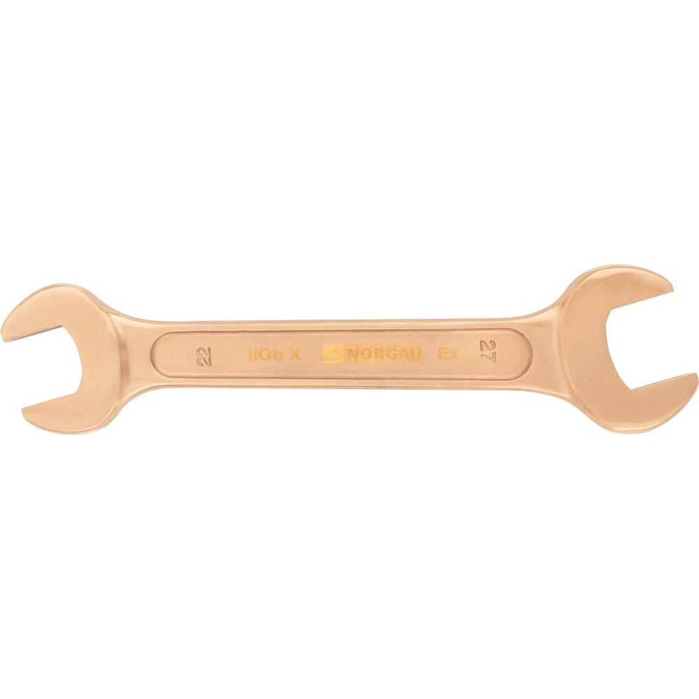 Ключ рожковый искробезопасный (22х27 мм; 215 мм), тип N6-22x27, NORGAU 069002098 предназначен для работ на предприятиях, где предъявляются требования к отсутствию искр во время эксплуатации инструмента.При изготовлении ключа применяется высокоточная машинная обработка, которая обеспечивает плотное прилегание зева к рабочим поверхностям крепежа, уменьшая возможность срыва граней детали.Длительный срок эксплуатации обусловлен стойкостью медно-беррилиевого сплава к коррозии.
