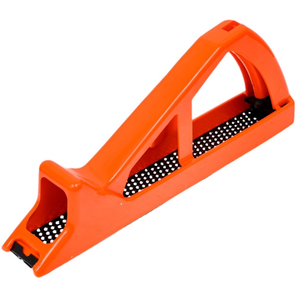 Обдирочный рубанок изготовлен из качественной и прочной пластмассы. Инструмент имеет крепления, позволяющие быстро и легко заменять использованные рабочие полотна. Обдирочный рубанок используется при обработке гипсокартона, пластмасс, фибергласа и других легкообрабатываемых материалов.