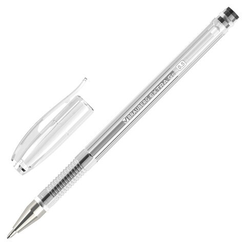 Ручка гелевая BRAUBERG "EXTRA", ЧЕРНАЯ, корпус прозрачный, узел 0,5 мм, линия 0,35 мм, 143900
