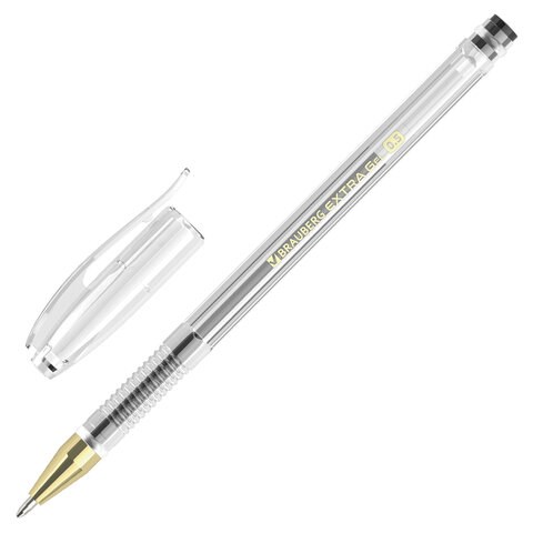 Ручка гелевая BRAUBERG "EXTRA GLD", ЧЕРНАЯ, корпус прозрачный, узел 0,5 мм, линия 0,35 мм, 143901