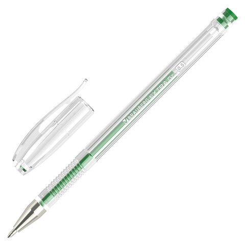Ручка гелевая BRAUBERG "EXTRA", ЗЕЛЕНАЯ, корпус прозрачный, узел 0,5 мм, линия 0,35 мм, 143904