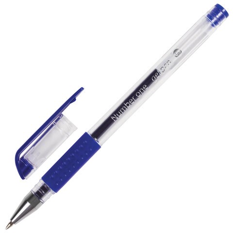 Ручка гелевая с грипом BRAUBERG "Number One", СИНЯЯ, узел 0,5 мм, линия письма 0,35 мм, 141193