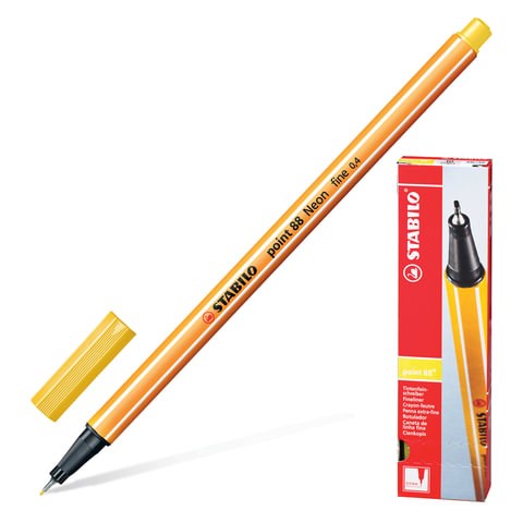 Ручка капиллярная (линер) STABILO "Point 88", ЖЕЛТАЯ, корпус оранжевый, линия письма 0,4 мм, 88/44