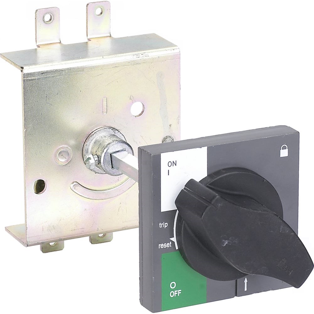Ручка поворотная на дверь шкафа РП-330Е предназначена для ручного дистанционного переключения (включения и отключения) автоматического выключателя серии ВА-330Е без открытия двери шкафа. Поворотная ручка состоит из ручки, удлинительной оси и поворотной рукоятки.