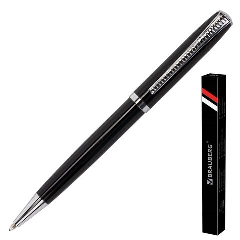 Ручка подарочная шариковая BRAUBERG "Cayman Black", корпус черный, узел 1 мм, линия письма 0,7 мм, синяя, 141410