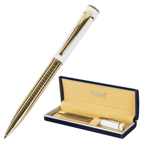Ручка подарочная шариковая GALANT "Mont Pelerin", корпус золотистый с белым, золотистые детали, пишущий узел 0,7 мм, синяя, 141661