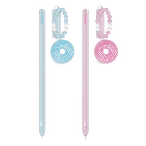 Надежный круглый корпус ручки выполнен в двух дизайнах ассорти розового и голубого цвета. Колпачок ручки дополнен подвеской с аппетитным пончиком - дизайн, который станет украшением любого рабочего пространства. Пишущий узел стандартной формы диаметром 0,7 мм обеспечит аккуратную линию письма толщиной 0,35 мм. Цвет чернил - синий, что делает ручку универсальной для повседневных дел.