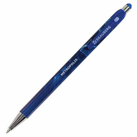 Ручка шариковая автоматическая BRAUBERG "Metropolis", СИНЯЯ, корпус синий, пишущий узел 0,5 мм, линия письма 0,3 мм, 144221