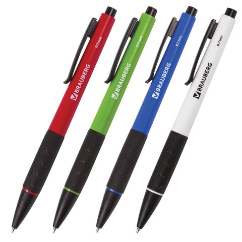Ручка шариковая автоматическая с грипом BRAUBERG "Klasse", СИНЯЯ, корпус ассорти, узел 0,7 мм, линия письма 0,35 мм, 140588
