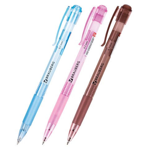 Автоматическая шариковая ручка с корпусом из полупрозрачного пластика в нескольких цветах и резиновым упором для удобства письма. Укомплектована стержнем синего цвета длиной 107 мм. Диаметр пишущего узла, равный 0,7 мм, создает линию письма, равную 0,35 мм.