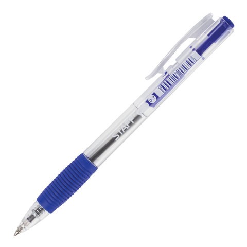 Автоматическая шариковая ручка с прозрачным корпусом и резиновым грипом для удобства письма, исключающим скольжение пальцев. Ручка снабжена сменным стержнем 110 мм, что позволяет увеличить срок службы. Диаметр пишущего узла 0,7 мм создает тонкую линию письма, равную 0,35 мм. Детали, выполненные в цвет синих чернил, соответствуют офисному стилю.