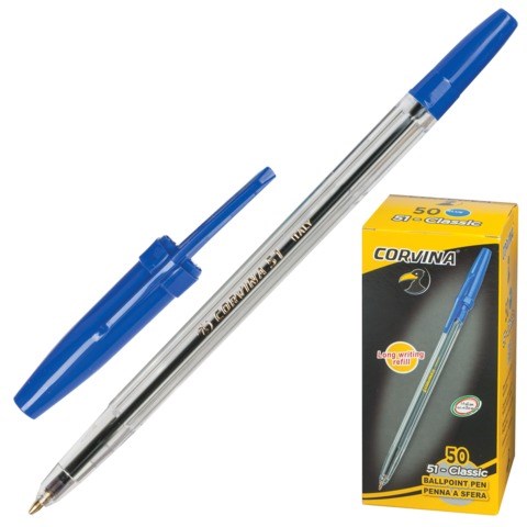Ручка шариковая CORVINA (Италия) "51 Classic", СИНЯЯ, корпус прозрачный, узел 1 мм, линия письма 0,7 мм, 40163/02