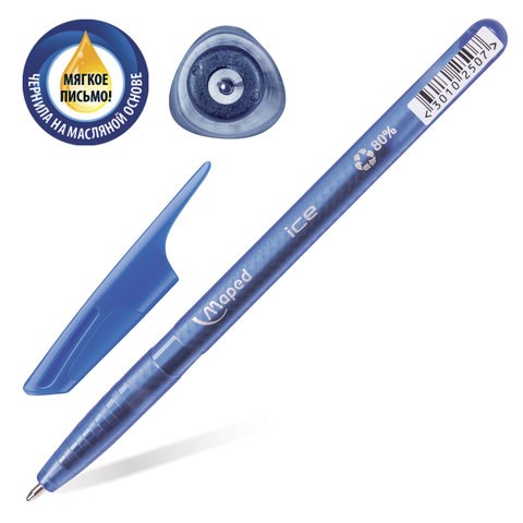 Ручка шариковая масляная MAPED (Франция) "Green Ice", СИНЯЯ, трехгранная, узел 1 мм, линия письма 0,6 мм, 224430