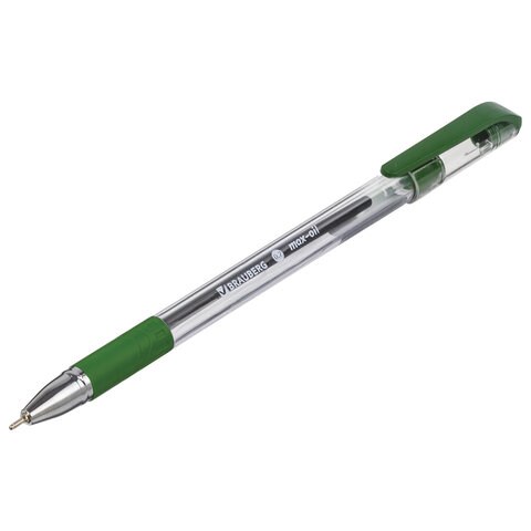 Ручка шариковая масляная с грипом BRAUBERG "Max-Oil", ЗЕЛЕНАЯ, игольчатый узел 0,7 мм, линия письма 0,35 мм, 142144