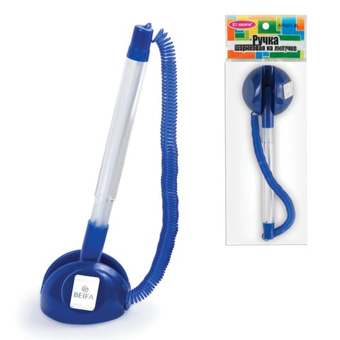 Ручка шариковая настольная BEIFA (Бэйфа) "СтопПен", СИНЯЯ, корпус прозрачный/синий, линия письма 0,7 мм, AP8863-BL