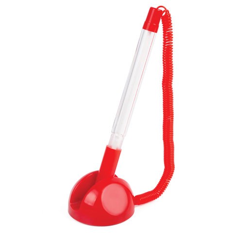 Ручка шариковая настольная BRAUBERG "Стенд-Пен", СИНЯЯ, пружинка, корпус красный, линия письма 0,5 мм, 141349
