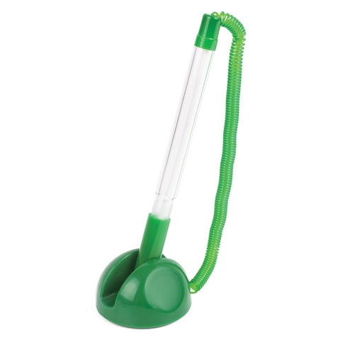 Ручка шариковая настольная BRAUBERG "Стенд-Пен", СИНЯЯ, пружинка, корпус зеленый, линия письма 0,5 мм, 141350