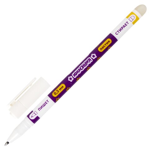 Чернила становятся невидимыми при нагревании. Нагрев достигается с помощью ластика, встроенного в корпус ручки. Чернила не размазываются и не растекаются. Возможность многократного стирания. Длина сменного стержня составляет 129 мм. Диаметр пишущего узла, равный 0,5 мм, создает тонкую линию письма, равную 0,35 мм. Пластиковый корпус круглой формы с ярким рисунком.