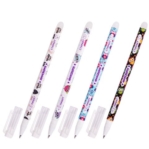 Ручка стираемая гелевая ЮНЛАНДИЯ "Совята", СИНЯЯ, корпус ассорти, узел 0,5 мм, линия письма 0,35 мм, 143658