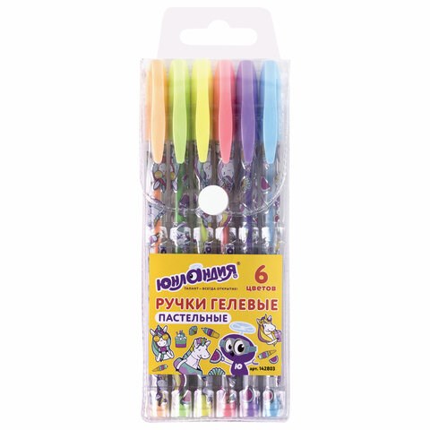 Ручки гелевые ЮНЛАНДИЯ, НАБОР 6 ЦВЕТОВ, ПАСТЕЛЬ, корпус с печатью, узел 0,7 мм, линия письма 0,5 мм, 142803