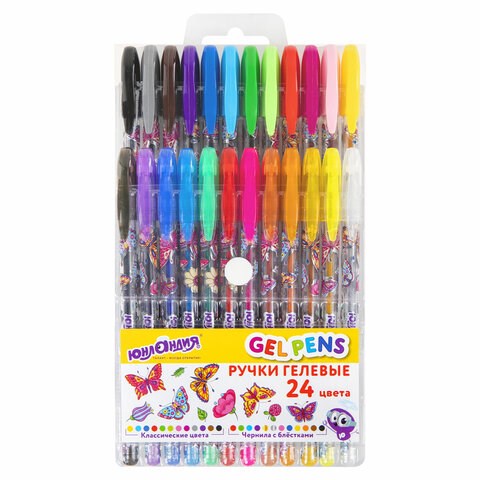 Ручки гелевые НАБОР 24 ЦВЕТА, ЮНЛАНДИЯ, корпус с печатью, узел 1 мм, линия письма 0,5 мм, 143821
