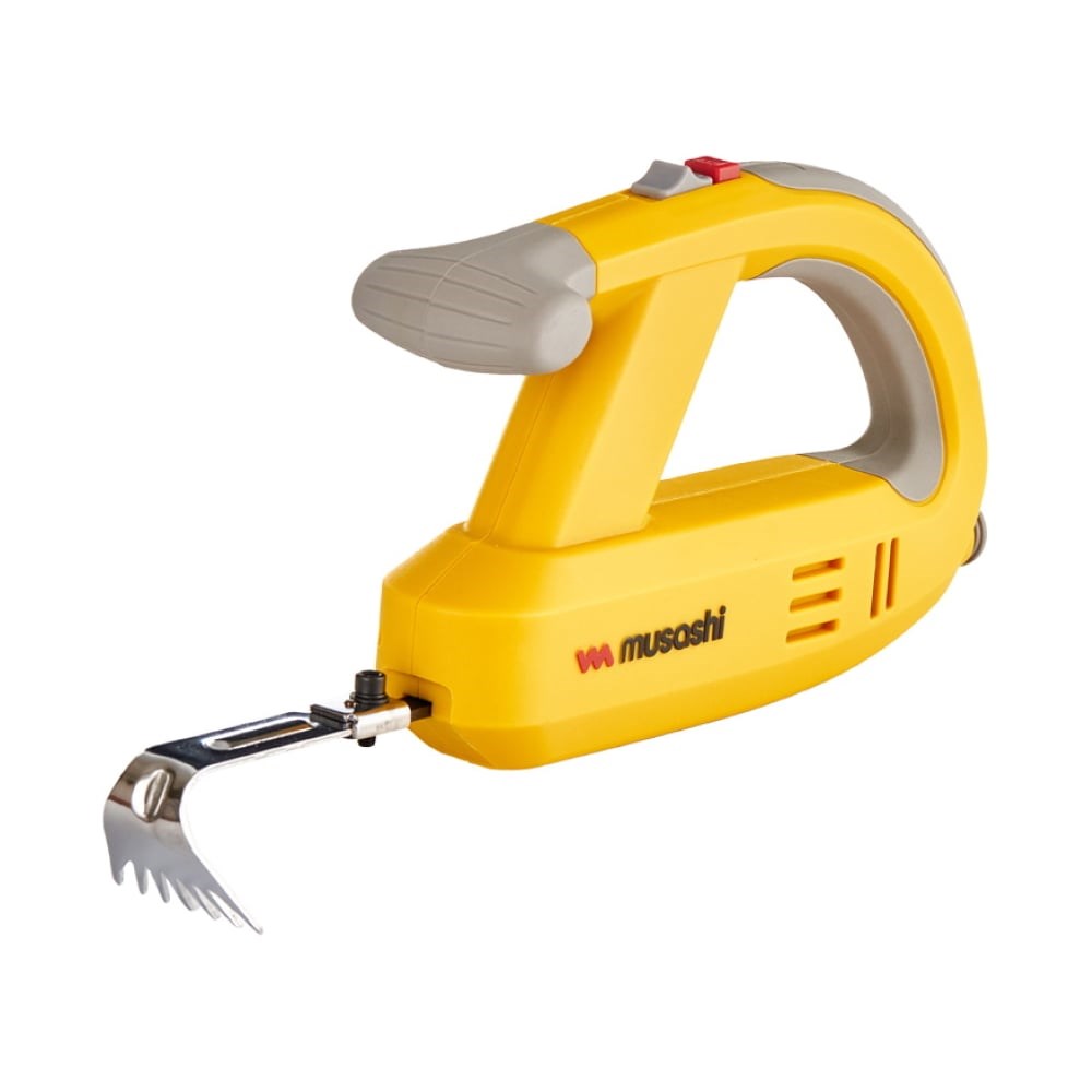 Аккумуляторная прополочная машинка Musashi WE-750 Легкая прополка удаляет нежелательные растения, сорняки, сорную траву, вытаскивая-вытягивая их корневую систему из земли благодаря работе в паре с насадкой, которая с помощью турбомоторчика двигается интенсивным вибродвижением вперед-назад с амплитудой хода 8 мм со скоростью 2300 раз в минуту.Является первой в мире электрической прополочной машинкой с вибрацией, работающей от аккумуляторов. Вибрационный принцип работы запатентован. Аналогов такого садового инструмента на данный момент в мире нет.Прополочная машинка Musashi - это корнеудалитель, удалитель сорняков, пропалыватель, рыхлитель, электротяпка в одном небольшом корпусе ярко-желтого цвета.Земляной ком с сорняка стряхивается во время прополки, оставляя полезный слой почвы на месте, параллельно взрыхлив ее.Благодаря встроенным аккумуляторам 1500 мАч и легкому весу машинки 960 г можно свободно перемещаться по участку и пропалывать землю без подзарядки батарей до 30 минут (на практике полноценные 1-1.5 часа работы).В стандартную комплектацию прополочной машинки входит металлическая насадка для средней прополки 50 мм, 7 зубцов. С помощью дополнительных аксессуаров, насадок (6 видов) и удлинительных ручек (2 вида) (приобретаются отдельно) можно работать с большей продуктивностью и легкостью. Металлические насадки изготовлены из никелированной высокоуглеродистой стали.