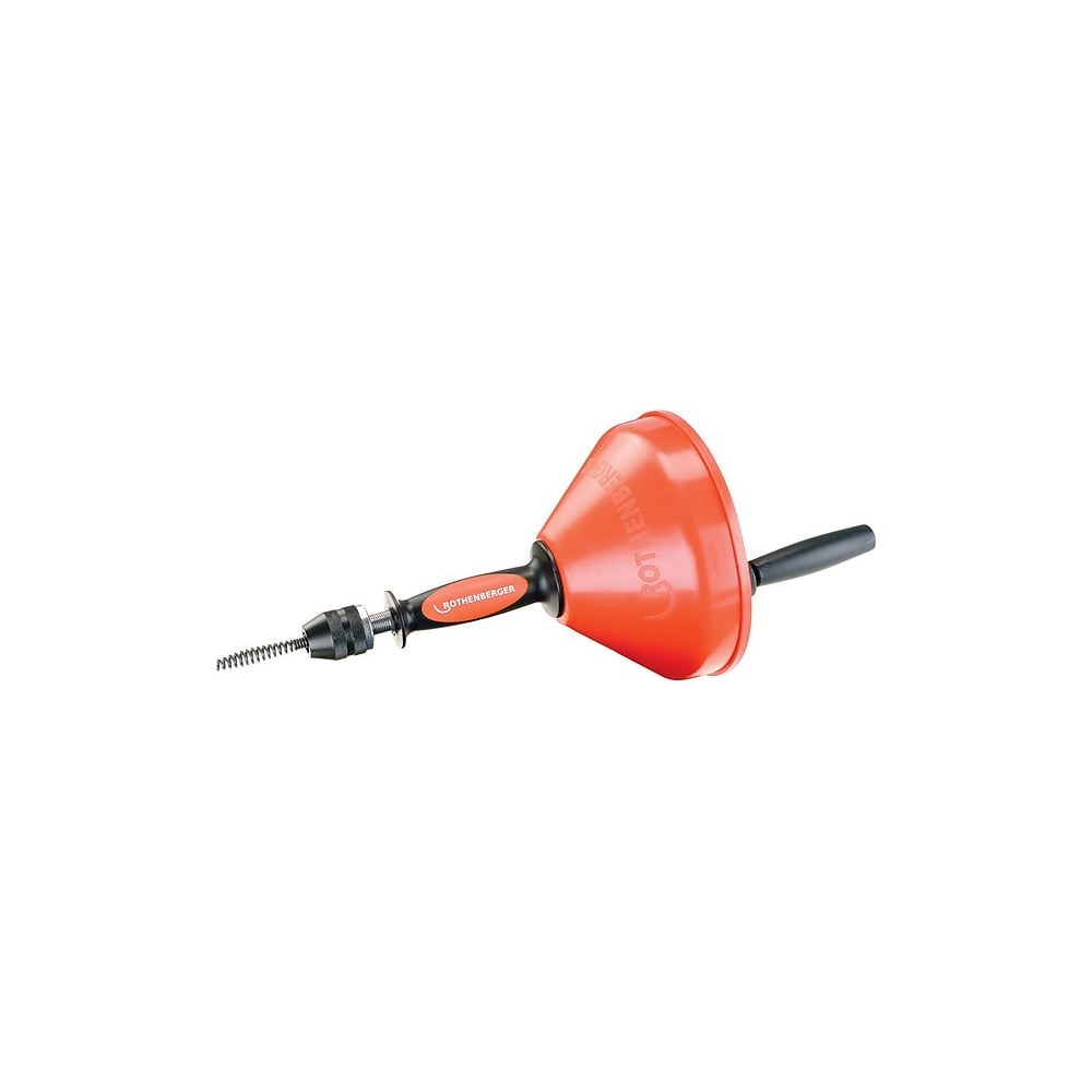 Ручная прочистная вертушка Rothenberger ROSPI 10 H+E Plus 72005 подойдет как для использования вручную, так и при помощи дрели (на чаше стандартный шестигранник для насадки). Прочистка происходит при помощи гибкой спирали длиной 10 метров. Емкость, в которой размещена спираль, изготовлена из ударопрочного пластика. Диаметр труб - 20-75 мм.