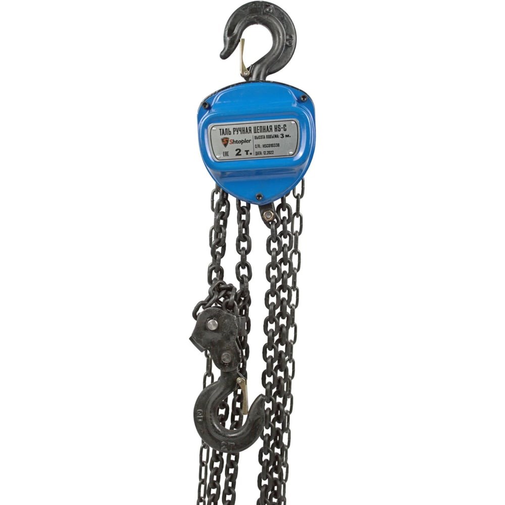 В продаже также имеются холостые и приводные тележки для талей. Рекомендуем приобретать комплект – это позволит расширить сферу применения выбранной вами тали.Shtapler HS-C – это ручная таль шестеренной конструкции, где в качестве тягового элемента используется цепь. Отличительные особенности этой модели:Вращающийся крюк, который облегчает работу с грузом в несовершенных условиях строповки.Наличие тормоза, который позволяет зафиксировать груз на определенной высоте.Возможная комплектация с передвижной тележкой.Возможно только вертикальное использование.Модель доступна в различных модификациях: грузоподъемность 0,5-50 т и высота подъема 3-18 м.