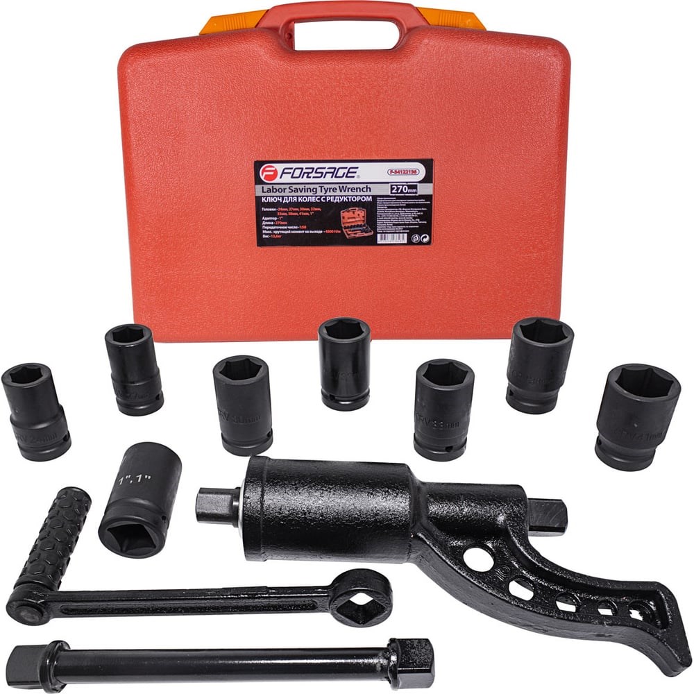 Ручной гайковерт с редуктором размером 1" от бренда Forsage — это мощный инструмент, который идеально подходит для профессиональных механиков, автослесарей и домашних мастеров. Он обеспечивает быстрый и легкий процесс откручивания и закручивания болтовых соединений благодаря своему высокому крутящему моменту и удобной конструкции.Технические характеристики:Общая длина инструмента: 270 ммПередаточное отношение: 1:58 (на 1 кг приложенной силы увеличивается в 58 раз)Максимальный крутящий момент: 4800 НмКонструкция: Механический усилитель крутящего момента с простой и прочной конструкциейРучка: Удобная нескользящая ручка для комфортного использованияПрименение: Этот гайковерт идеально подходит для:Откручивания и закручивания колесных гаек автомобилейРаботы с резьбовыми соединениямиЗатягивания и ослабления крепежных элементов в различных механизмахС ручным гайковертом с редуктором вы сможете выполнять любые задачи по ремонту и обслуживанию автомобилей быстро и эффективно!
