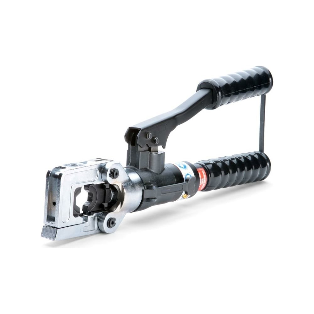 Ручной гидравлический пресс КВТ ПГРс-240у 58262 - это простой и удобный в применении ручной инструмент с гидравлическим приводом. Предназначен для опрессовки медных и алюминиевых неизолированных трубчатых наконечников Диапазон сечений: медные наконечники 10–185 мм2 алюминиевые наконечники 10–240 мм2 Механизм автоматического сброса давления (АСД) Двухскоростная помпа с механизмом быстрого хода поршня Откидная П-образная вращающаяся голова Эргономичный рычаг ручного сброса давления Подпружиненная рукоятка с фиксатором Благодаря небольшому весу и габаритам, позволяет работать в труднодоступных местах Максимальное усилие: 5 т Вес комплекта/инструмента: 5.40/2.90 кг