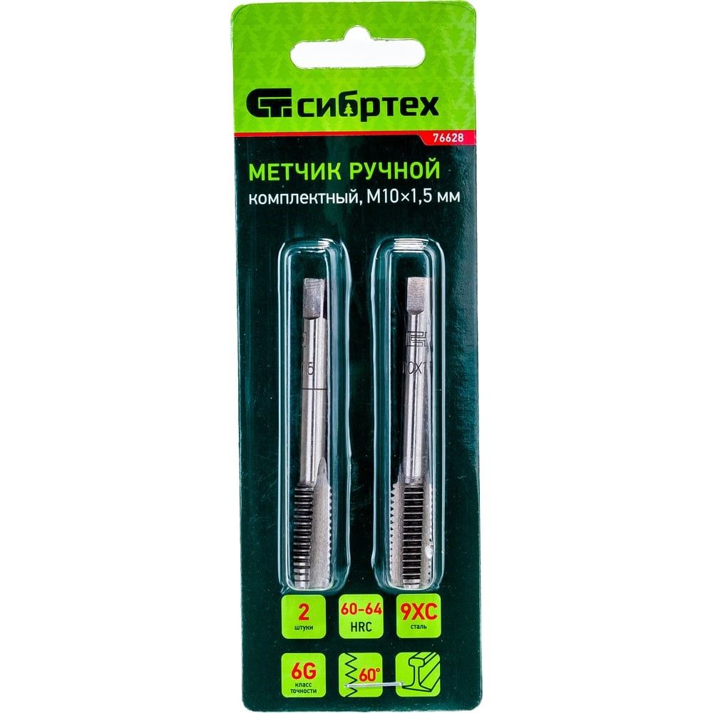 Ручной метчик М10 х 1,5 мм 2 шт. СИБРТЕХ 76628 выполнен из инструментальной стали и обладает повышенной устойчивостью к износу. Применяется для резьбонарезных работ. Размер М10 х 1,5 мм. В комплект входят 2 метчика.
