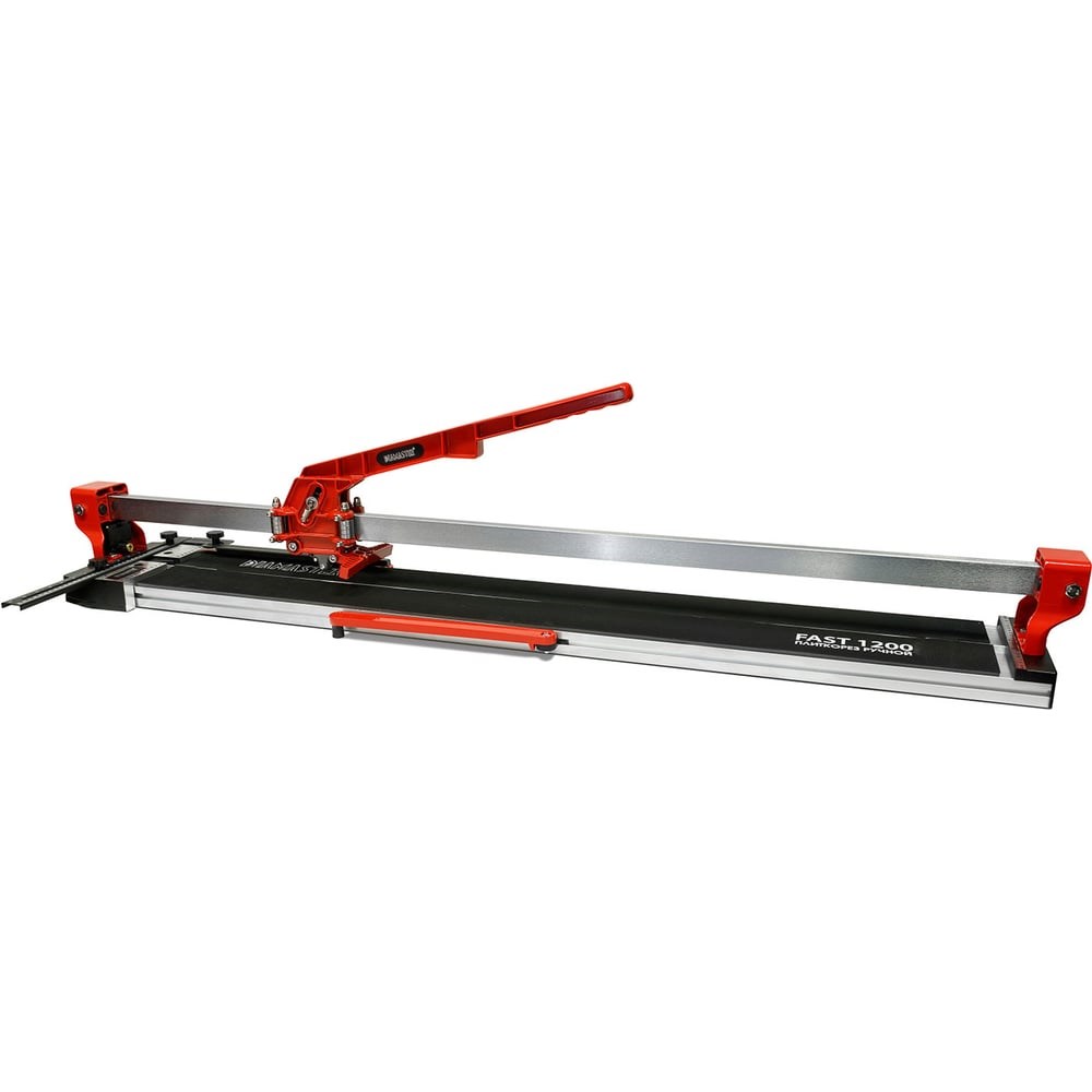 Профессиональный плиткорез Diamaster Fast может выполнять прямой рез заготовок длиною 1200 мм, изготовленных из керамики или керамогранита. Классический монорельс гарантирует жесткость и надежность конструкции. Каретка плиткореза оборудована шестнадцатью подшипниками. Восемь из них регулируются, что позволяет достичь оптимального скольжения и максимальной точности. Для удобства работы на станке есть лазерный указатель реза (две батарейки тип "ААА" не поставляются в комплекте) и дополнительные расширители рабочей поверхности.