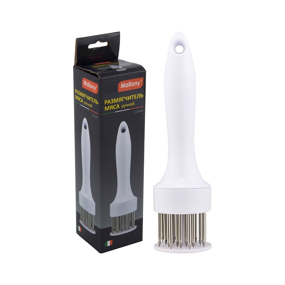 Ручной размягчитель мяса Mallony CARNE 19x5 см пластмасса нержавеющая сталь 003617 предназначен для бытового использования. Не токсичен, поэтому безопасен для здоровья. Благодаря высокой прочности прослужит долго. За счет эргономичной формы изделие удобно лежит в руке.