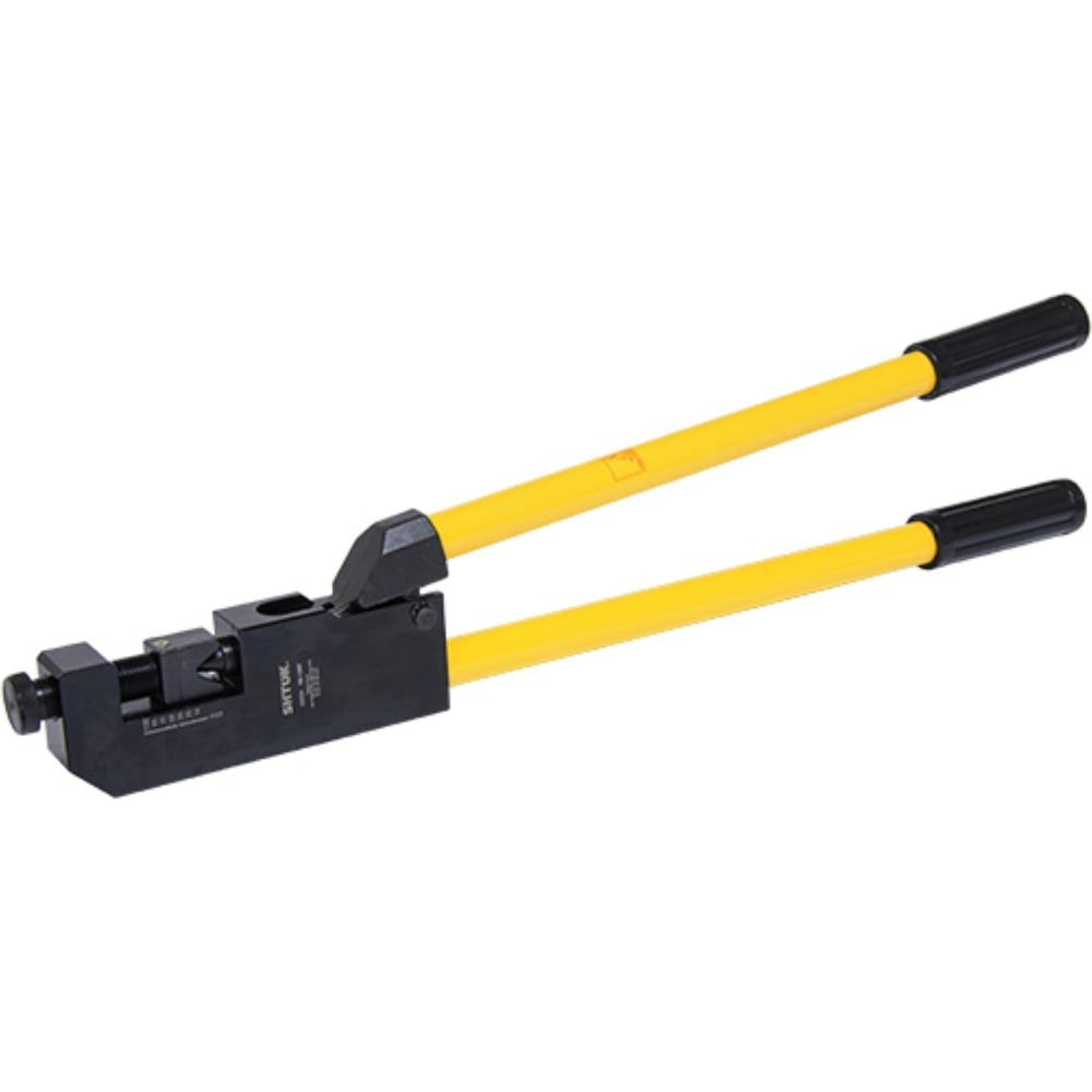 Ручные пресс-клещи SHTOK ПК-120У 03004 производят опрессовку медных и алюминиевых наконечников одним движением. Предназначены для использовании на производстве. Регулировка момента затяжки при помощи винта и шкалы под обжимаемый наконечник. Ручной гидронасос Предохранительный клапан Диапазон сечений: 10, 16, 25, 35, 50, 70, 95, 120 мм2 Прочность конструкции