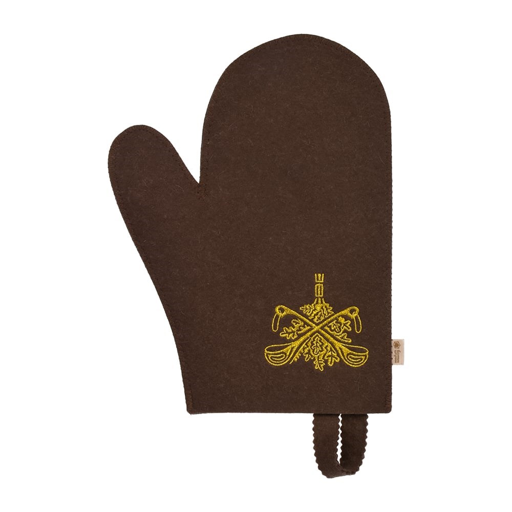 Рукавица с вышитым логотипом Банные Штучки войлок 100%, коричневая 41420 уберегает руки от высокой температуры пара и металлических поверхностей. Выполнена из натуральной шерсти, поэтому устойчива к влаге и деформации. Свободная форма удобно надевается и снимается на любую руку.