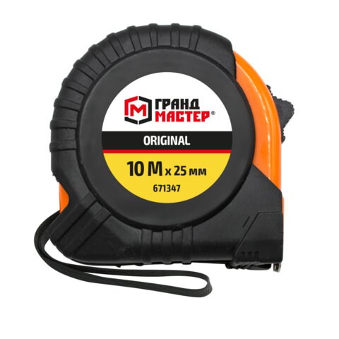 Рулетка измерительная 10 м х 25 мм, обрезиненный корпус, с фиксатором, ГРАНДМАСТЕР Original, 671347