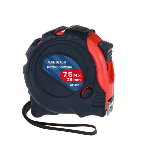 Рулетка измерительная 7,5 м х 25 мм, обрезиненный корпус, 3 фиксатора, RABBITEX (РАББИТЕКС) Professional, 671358
